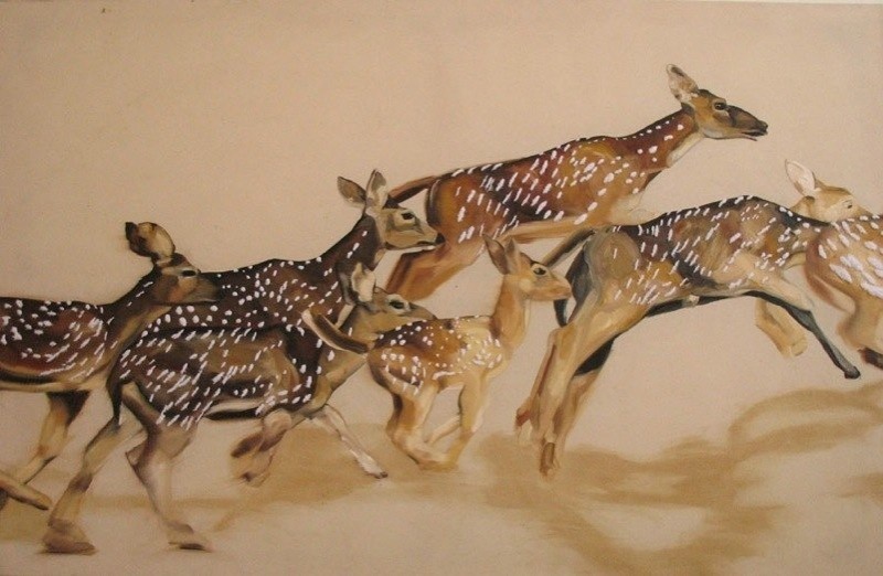 160 x 247 cm, 2006. Embroidery and oil paint on canvas.