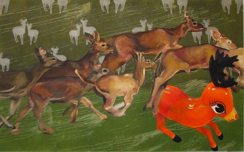 138 x 221 cm, 2006. Embroidery and oil paint on canvas.
