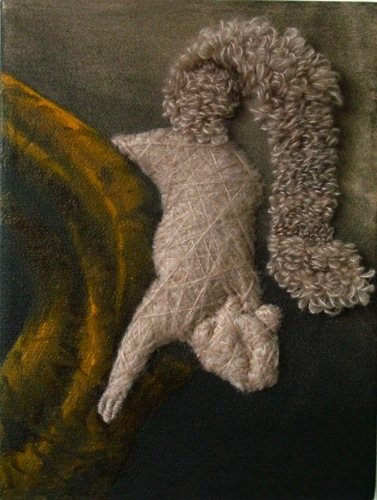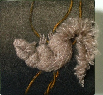(29,5 x 22) + (15,5 x 15,5) cm, 2010. Ink, oil paint and embroidery on canvas.