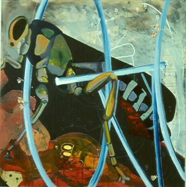 140 x 140 cm, 2002. Ink, gloss, blackboard- and oil paint on canvas.