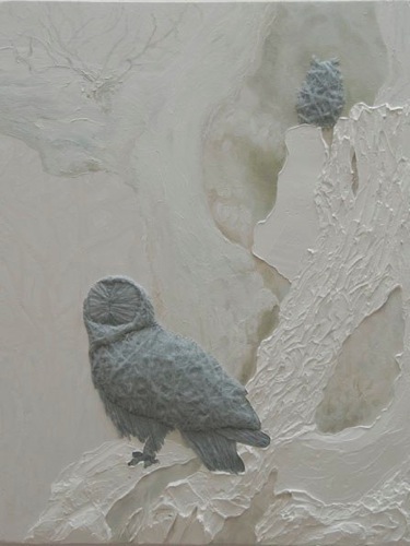 (65 x 50) + (65 x 50 cm), 2011. Oil paint, gloss and embroidery on canvas.