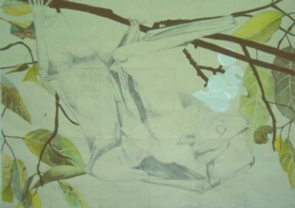 125 x 178 cm, 2003. Gloss, crayon, chalk and pencil on paper.