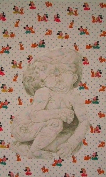 171 x 106 cm, 2006. Gloss-paint and pencil on wall-paper.
