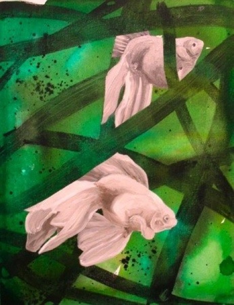 46 x 36 cm, 2009. Ink and oil paint on canvas-board.