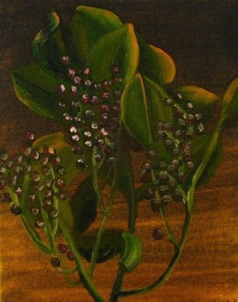 24 x 18 cm, 2009. Ink and oil paint on canvas-board.