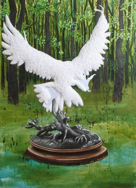 218 x 157 cm, 2008. Oil paint, acrylic and embroidery on canvas.