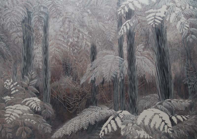 140 x 200 cm, 2011. Oil paint and embroidery on canvas.